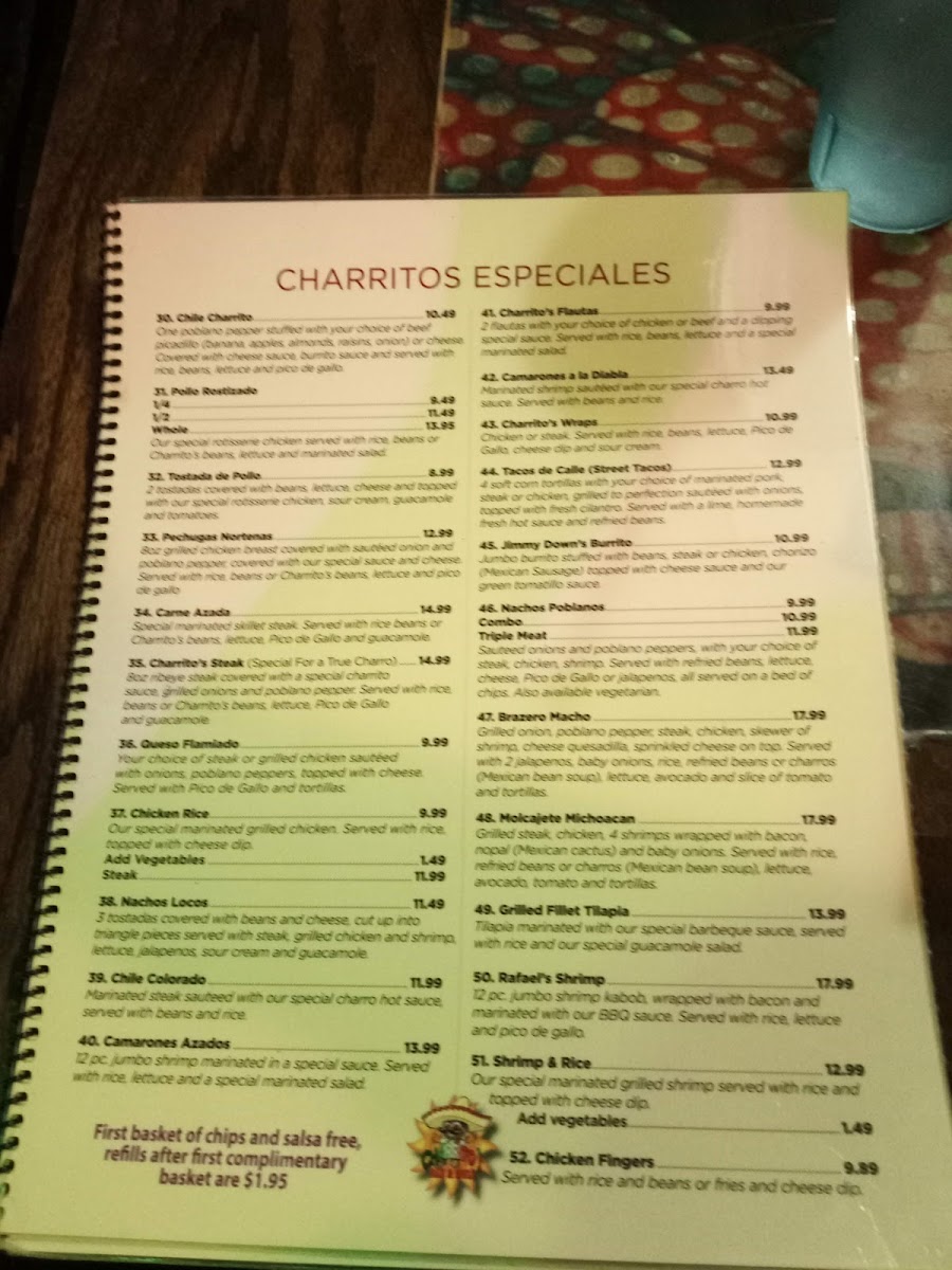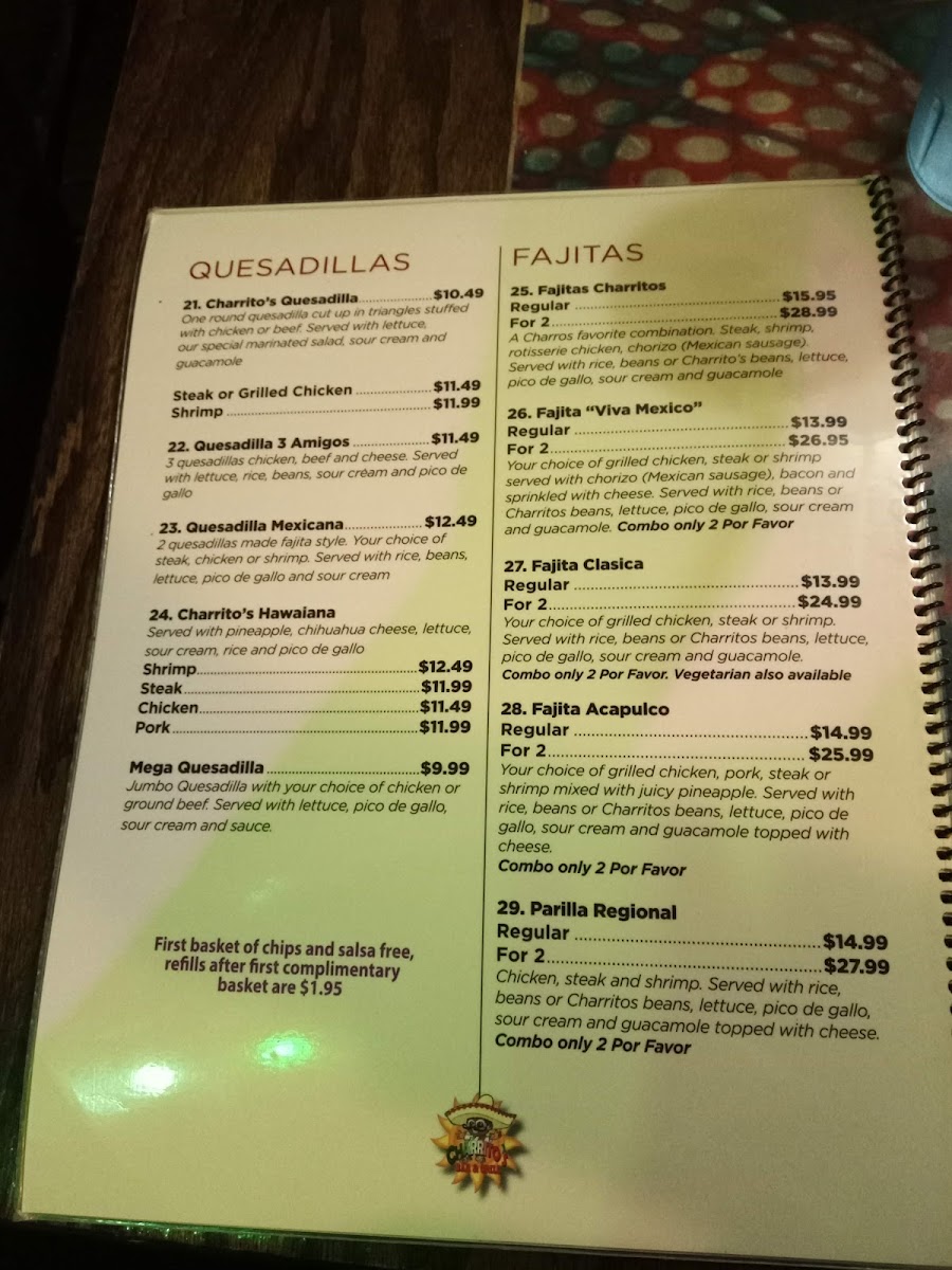 For dessert, treat yourself to Nieve Frita or classic Mexican Churros. The drink selection is equally impressive, with a variety of margaritas that guests rave about. With great ambiance and fantastic service, Charrito's stands out as a hidden gem perfect for casual dining or special occasions. Whether you're a regular or a first-time visitor, each visit promises delightful flavors and memorable moments.